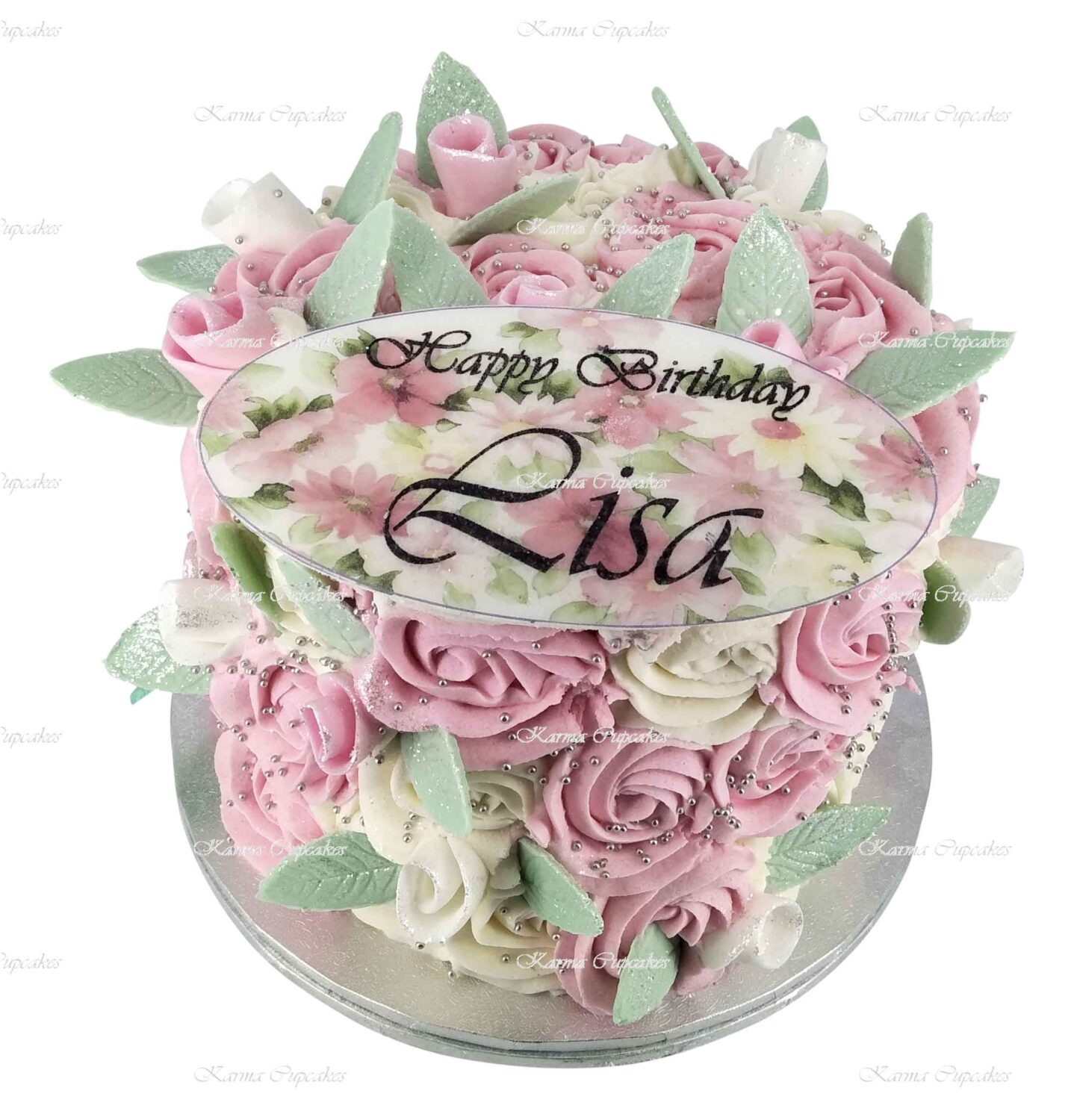 Rose Swirl Buttercream Iced 6 inch Cake – serves 10-12 cafe size portions