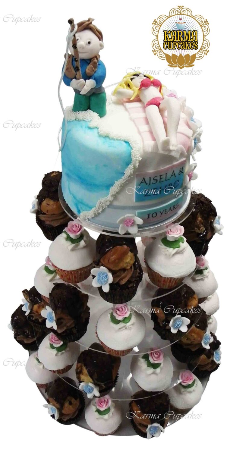 If you would like this cake to be a top tier for a cupcake stand, as our example photo shows please send us a message via our contact us page and we will advise of pricing.