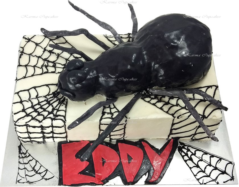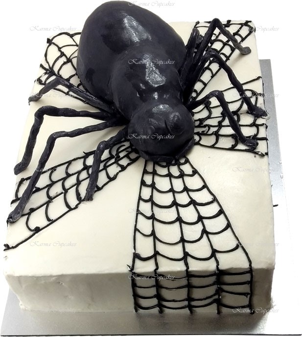 1/2 Slab Birthday Cake with buttercream icing covered with cob webs and 3D spider . Serves approximately 40-50.