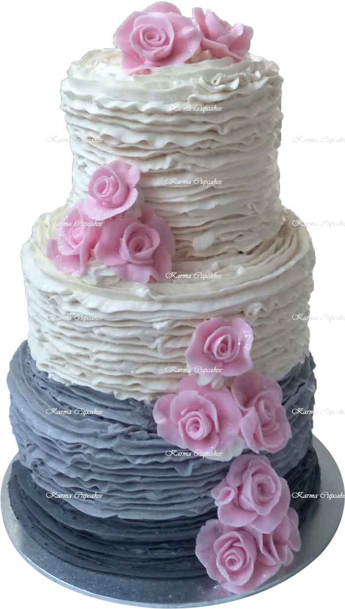 This three-tiered ombre buttercream ruffle wedding cake, in grey, is a true head turner.
