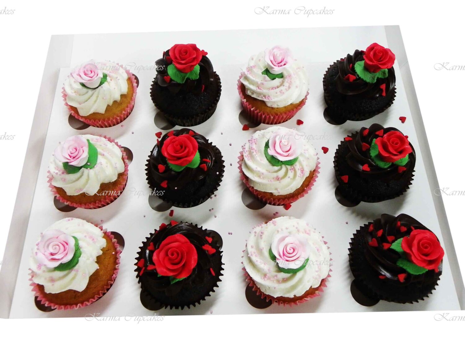Handmade sugar rose in a colour of your choice, on our classic vanilla and chocolate cupcakes. Please mention your colour preference in the comments section
