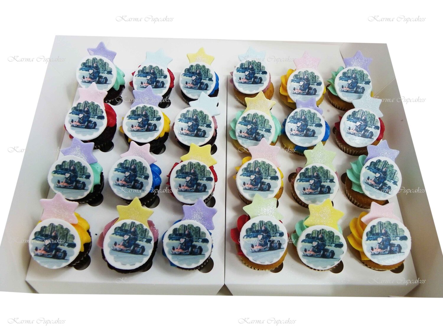 We can place your round logo on a mini vanilla and chocolate cupcakes.