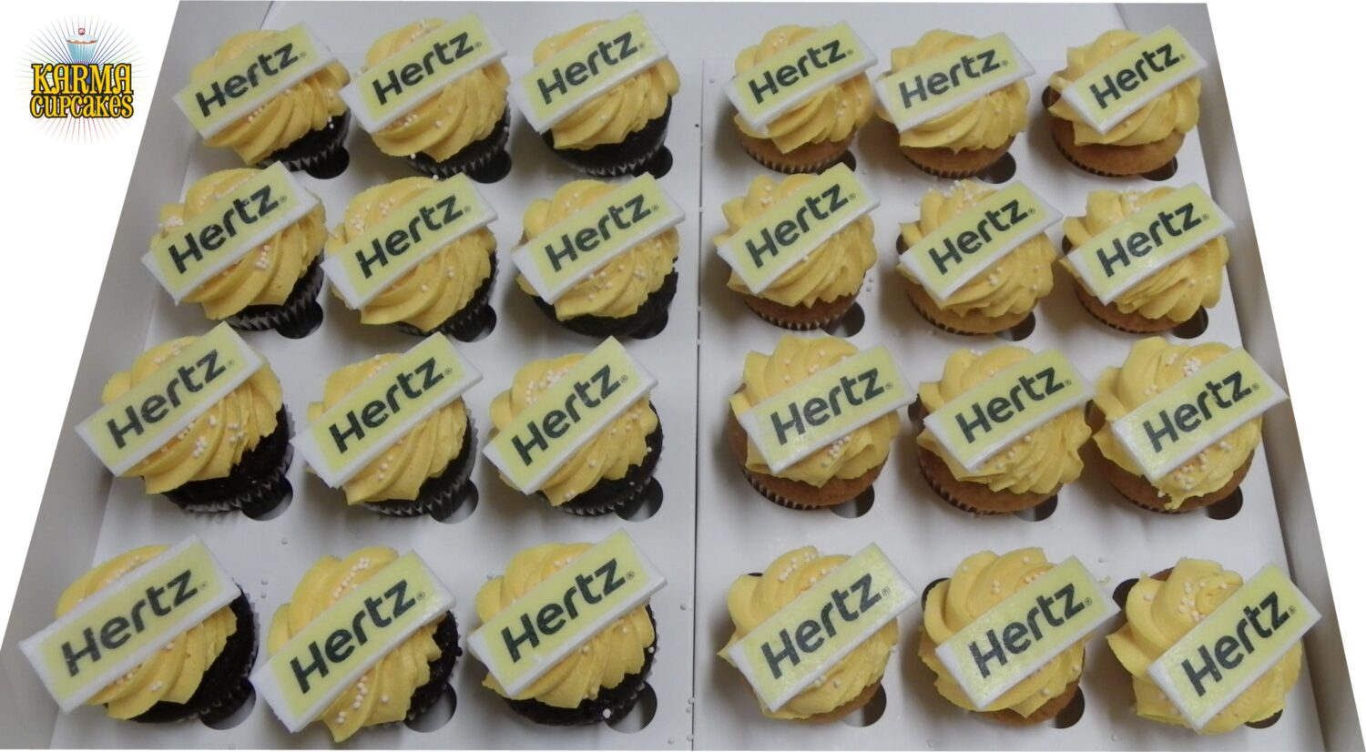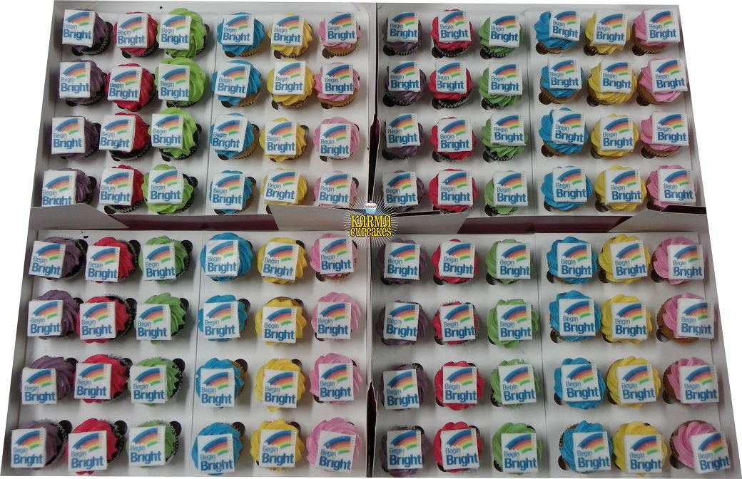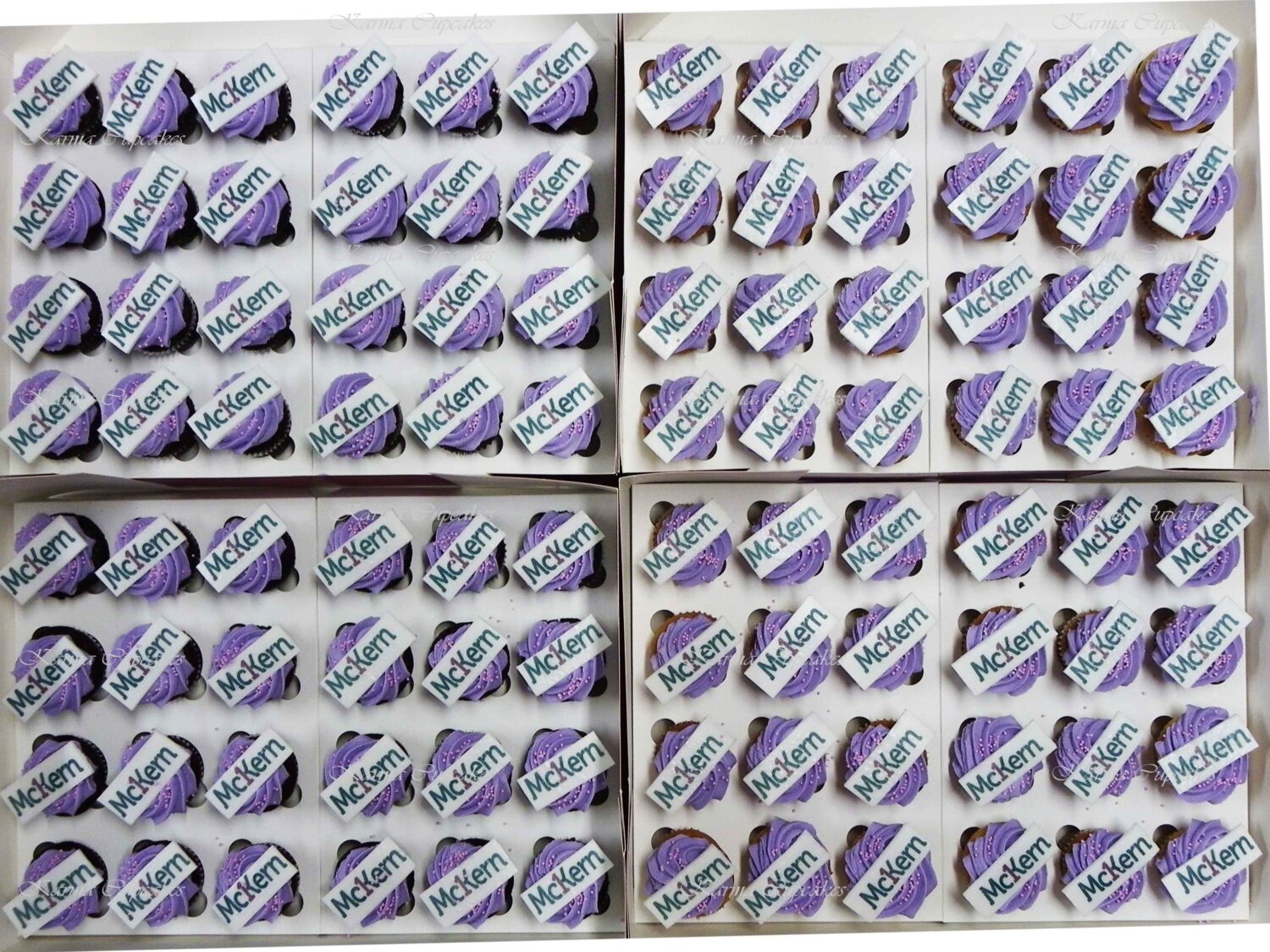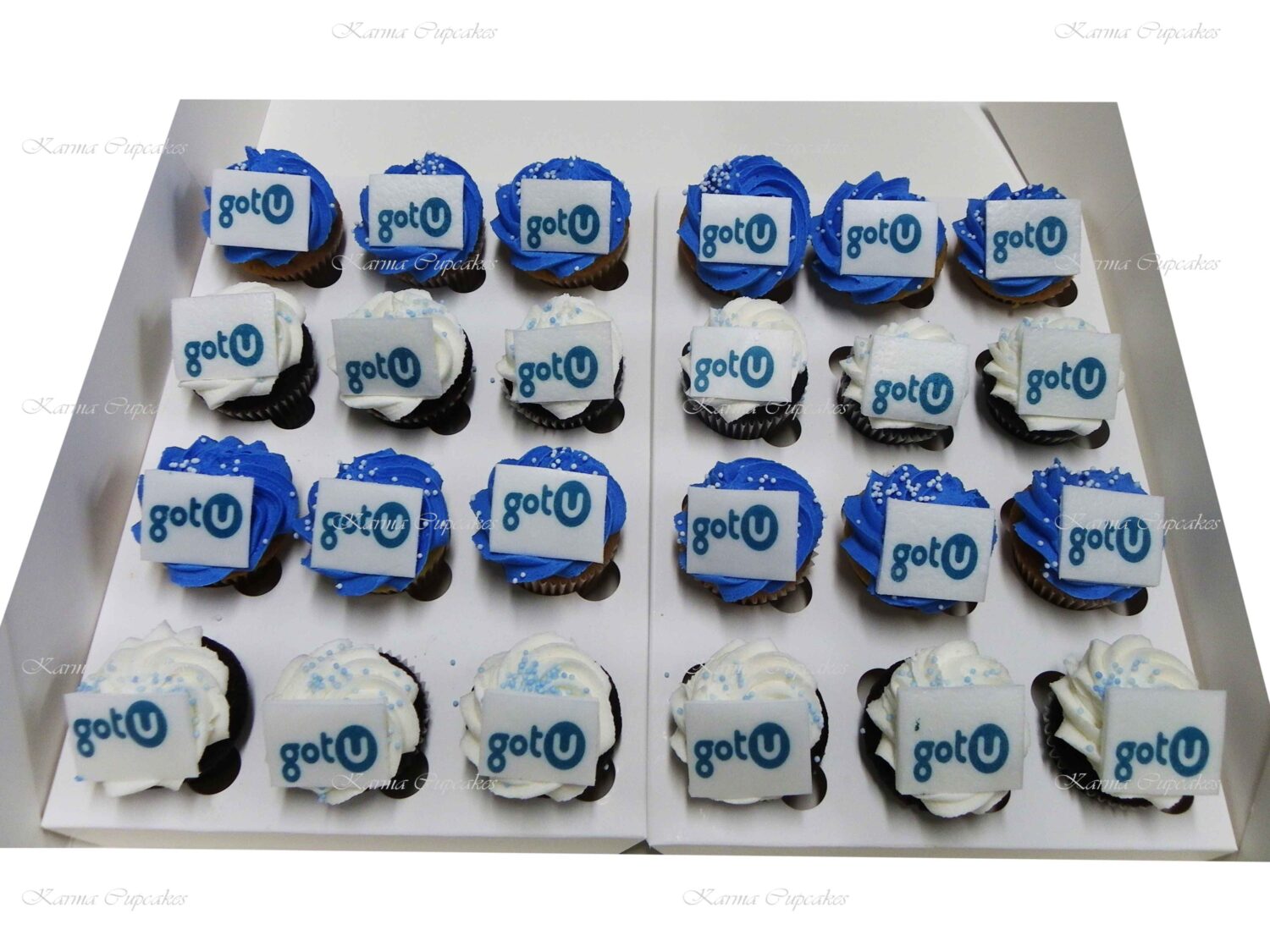We can place your square logo on a mini vanilla and chocolate cupcakes.
