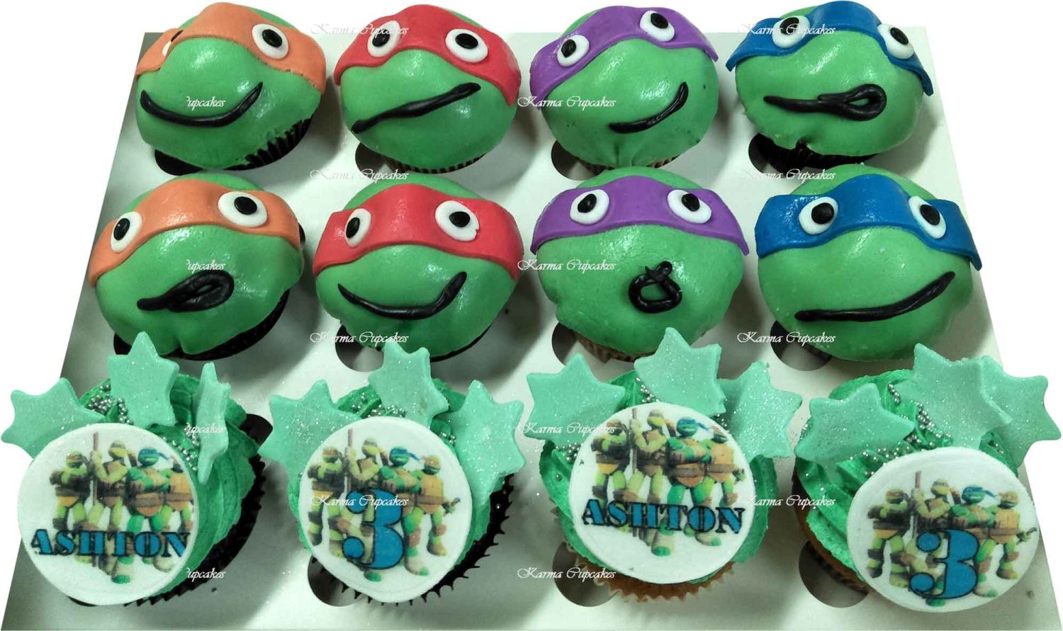 Or swap out 4 cupcakes with green sugar stars and edible images of the team with your child’s name and age. (Please use the notes section on checkout for details).